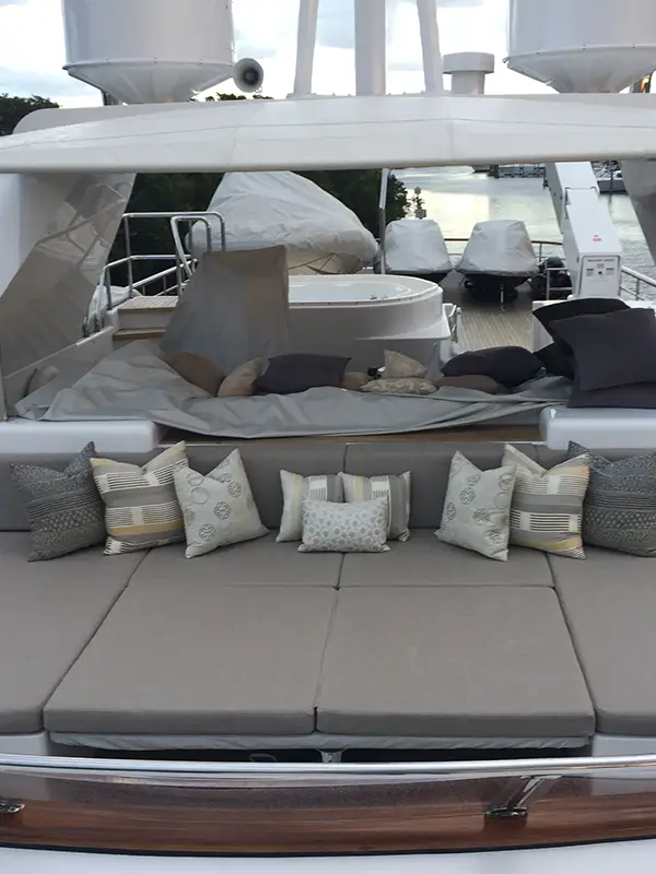 Experience ultimate outdoor and indoor comfort with custom yacht exterior cushions designed for luxury and durability. Made from UV-resistant, quick-dry marine-grade fabrics and high-resilience foam, Our cushions are built to withstand the elements while maintaining their shape, color, and elegance. Every cushion is tailored for a flawless fit and refined look, enhancing your yacht's deck.