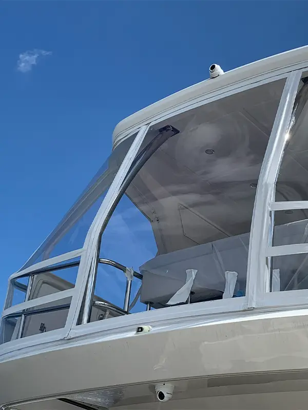 Using high-quality marine-grade vinyl and crystal-clear polycarbonate panels, our enclosures shield your vessel from wind, rain, and UV rays while maintaining visibility and enhancing onboard comfort.